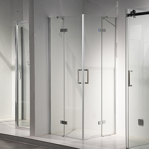 豪华方形室内洁净室可折叠开口玻璃门枢轴淋浴房,用于公寓浴室