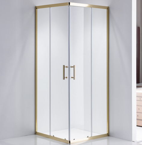 Square Tempered Glass Shower Room with Double Sliding Golden Aluminum Frameless Cubicle for Hotels and Apartments